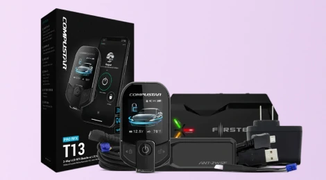 Nothing matches the performance of the PRO T13 remote starter. The main remote is waterproof and features an LCD display. It has a built-in lithium-ion power cell and provides up to three miles of range with the easiest-to-use and safest transmission interface available.
